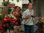 Pero la trama de parejas que de verdad os interesa es la de Pacey y Joey, ¿verdad, pájaros? Pues os cuento: Joey le confiesa a ¿su amiga? Jen que Pacey está impaciente por acostarse con ella y que ella no quiere todavía (el chico está intentando usar el truco de la psicología inversa con Joey, ahora es él el que corta de raíz cualquier amago de enrollarse con ella ante la negativa de Joey de llegar hasta el final…). Jen le aconseja ir a una de estas clínicas donde dan información sexual en las series. Cuando Bessie descubre los panfletos y los preservativos de regalo que ha traido Joey de vuelta, se pone hecha una furia y le monta un pollo delante de todos los huéspedes del B&B, que estaban allí tranquilamente desayunando sus crepes, sin meterse con nadie. Luego lo hablan y HACEN LAS PACEYS.