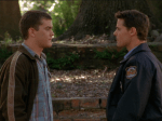 De qué va: El nuevo director del insti intenta descubrir quién metió a su perro y a su barco en la piscina del instituto. Tras varias “escenas de interrogatorio” con planos angulosos e iluminación baja (que cantan un poco a imitación barata y a bajo presupuesto…) se descubre que fueron Dawson, Jack y Pacey compinchandos para culpar a Drew Valentine, al que expulsan unos días. Al final del episodio, enterrando las pruebas del delito, Pacey le dice a Dawson que no piensa rendirse para que algún día vuelva a confiar en él. Ah, y Dawson descubre que el señor Brooks fue un director de cine que dirigió varias películas en Hollywood con el nombre de A.I. Brooks. ¡Toma ya!