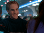 De qué va realmente: De dejar a los personajes que se expresen con tiempo y sin agobios, casi como si fuera una obra de teatro, como bien expone Scott Andrews en su libro Troubled Waters (IMPRESCINDIBLE si eres fan de la serie, lo tienes a precio ridículo en Amazon o la web del autor, supongo). Esta charla de Dawson y Joey en tres escenarios distintos (cine, diner, columpios), esa discusión durísima de Pacey y Joey tras el sexo (él flipa cuando ella le dice que simplemente ha sido “nice” y ella se siente insegura de cómo se ha comportado), esas puyas entre el psicólogo y Jen… todo está muy bien escrito y actuado. Sinceramente, me cuesta imaginar un capítulo así en otra serie teen (aunque puedo estar equivocado). Y va también de demostrarle a la audiencia, y a Joey, que el fantasma de Dawson está más vivo que nunca: el chico le dice que aquella promesa que se hicieron de que se acostarían juntos la primera vez de cada uno es una tontería y puede olvidarla… y ella niega que se haya acostado con Pacey cuando este le pregunta directamente por el tema (han estado juntitos en una cabaña en la montaña en un viaje que media clase enfocaba como “es la hora del sexo”). ¿Le dice que no para no arruinar la bonita tarde que han pasado, para no herirle en sus sentimientos o porque quiere negarse a sí misma que esa sea la realidad? Hmmmmmmm…