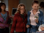 En la baby shower que le dan a Gale, Jen revela los nombres que le pondría a sus hijos: Emma y Jackson (“Jackson Pollock, he made a beautiful mess”)… se ve que con el tiempo cambiaría de opinión porque (SPOILERS) en el doble episodio final conocemos que su hija se llama Amy. En la misma baby shower (fiesta en la que no hay ni ducha ni bebé, esto es así), Joey le regala a Gale el colgante que Dawson le regaló en la tercera temporada (3×02 Homecoming –yes, we do have a recap for that one-) para que Lily lo tenga en el futuro. Esto está muy bien, pero tiene dos problemas: 1) El colgante original era verde y este es morado… 2) Resulta que Joey es una re-regaladora, ¡regala regalos de otros! (de esto hay un capítulo de Seinfeld buenísimo cuyo título no recuerdo porque soy una persona vieja).