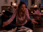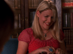 Sigamos: Joey se pasa todo el episodio intentando estudiar en la biblioteca pero siendo interrumpida continuamente por Dawson, Jack, una pareja que se está liando justo al lado… recuerda un poco al capítulo en el que Noel se toma algo chungo para estudiar toda la noche en Felicity y ponen subtítulos para entender lo que dicen, con la diferencia de que en Felicity hacía gracia. Algo que sí hace gracia es Busy Philipps, que vuelve a deleitarnos con sus dotes cómicas: Audrey sospecha que Alex la ha vuelto a contratar porque Pacey se ha acostado con ella y le pone los dedos en el cuello a Pacey para comprobar su pulso: “¡Se está acelerando, te has acostado con ella!”. Pacey dice que su pulso se está acelerando porque le ha echado la mano al cuello y no quiere morir, jajaja. Si solo tenéis que ver una secuencia de la quinta temporada, que sea esta. Audrey y Pacey son la caña.