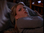 Audrey termina su speech destroyer (un poco reministence del panegírico de Jen en la iglesia en el funeral de Abby Morgan) y coge las llaves del coche de Pacey sin que nadie se entere, arranca el coche y lo estampa voluntaria o involuntariamente contra la casa de Dawson, atravesando las paredes como si fueran de mantequilla, dándose de morros contra el volante, haciéndose sangre en los labios y desplomándose en el sofá del salón. La secuencia es maravillosa, un merry mayhem como dice el título de lo más goloso, pero me hace preguntarme de qué material están hechas las paredes de la casa de Dawson… ¿del material del que están hechos los sueños? ¿Es Dawson tan soñador que ha extendido sus propias ilusiones al material con el que se edificó su casa? ¿Es la casa de Dawson, en esencia, una casa ficticia que solo existe en la imaginación de los personajes de la serie? Reflexionemos.