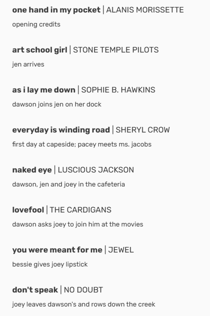 13/ Ni Paula Cole ni Jann Arden: La canción que querían para los créditos con las imágenes de los chicos al principio de cada capítulo era One Hand in My Pocket de Alanis Morissette. La tenéis debajo editada. ¿Os mola?