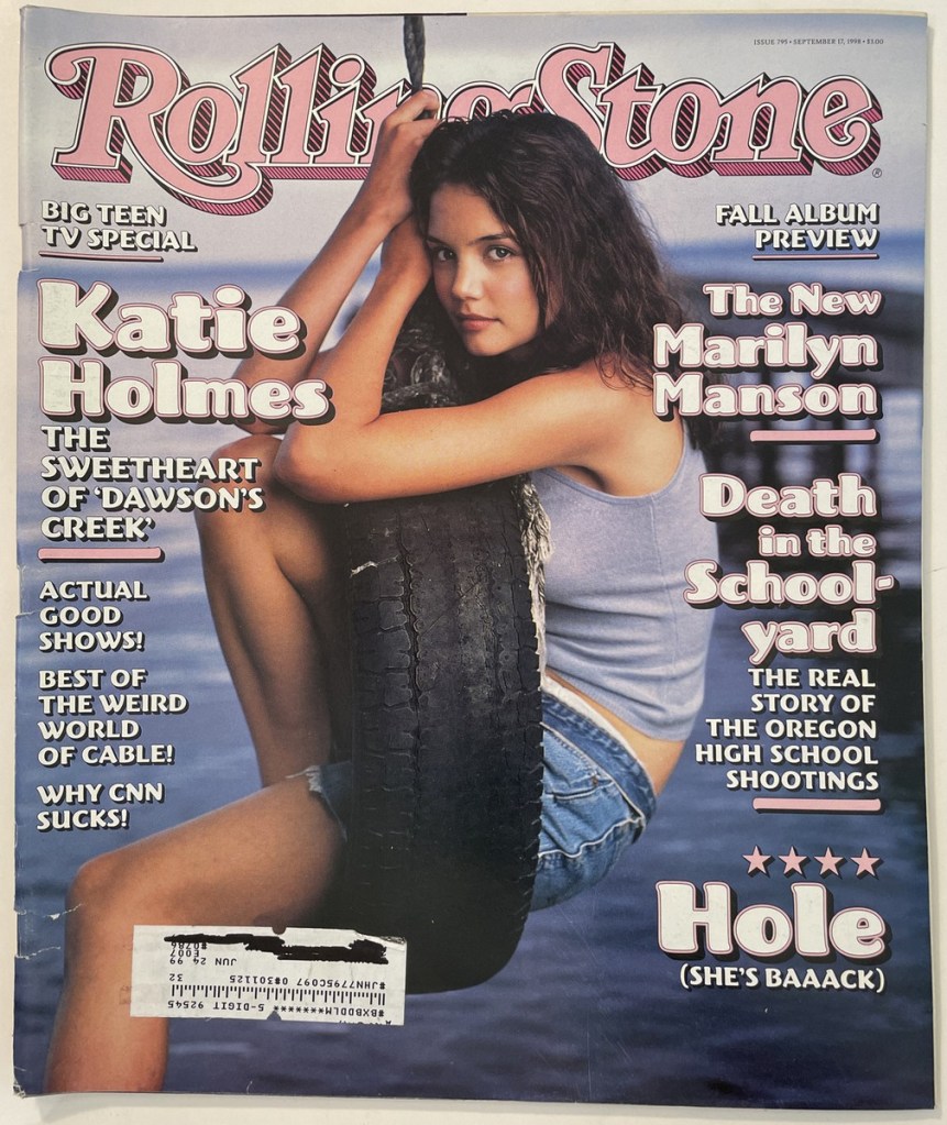 4/ Que la serie esté dentro de la propia serie me flipa: Kevin Williamson y el metalenguaje alcanzaron altas cotas de disfrutabilidad poniendo el póster de Sé lo que hiciste el último verano en el videoclub donde trabajaban los chicos, Screen Video (¡lo eché de menos en la cuarta temporada!), o cuando un asesino en serie llama a lo Scream a Jen en uno de mis episodios favoritos de la serie, pero cuando pegó el campanazo de verdad fue cuando Dawson se pasea por delante de la portada de Rolling Stone con Katie Holmes que tienen enmarcada en la productora donde se ocupa de la serie The Creek… oye, Dawson, ¿esa no se parece mucho a tu amiga Joey?